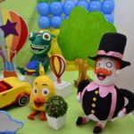 Mesas no padrão de 3 metros. Decorações elaboradas somente com peças de alta qualidade. Personagens originais importados ou confeccionados em pelúcia. Painéis e faixas sublimados (impressão digital em tecido). Bolos cenográficos em biscuit. Totens confeccionados em MDF com adesivo. Todos os itens observados nas fotos compõem a decoração, exceto os balões.